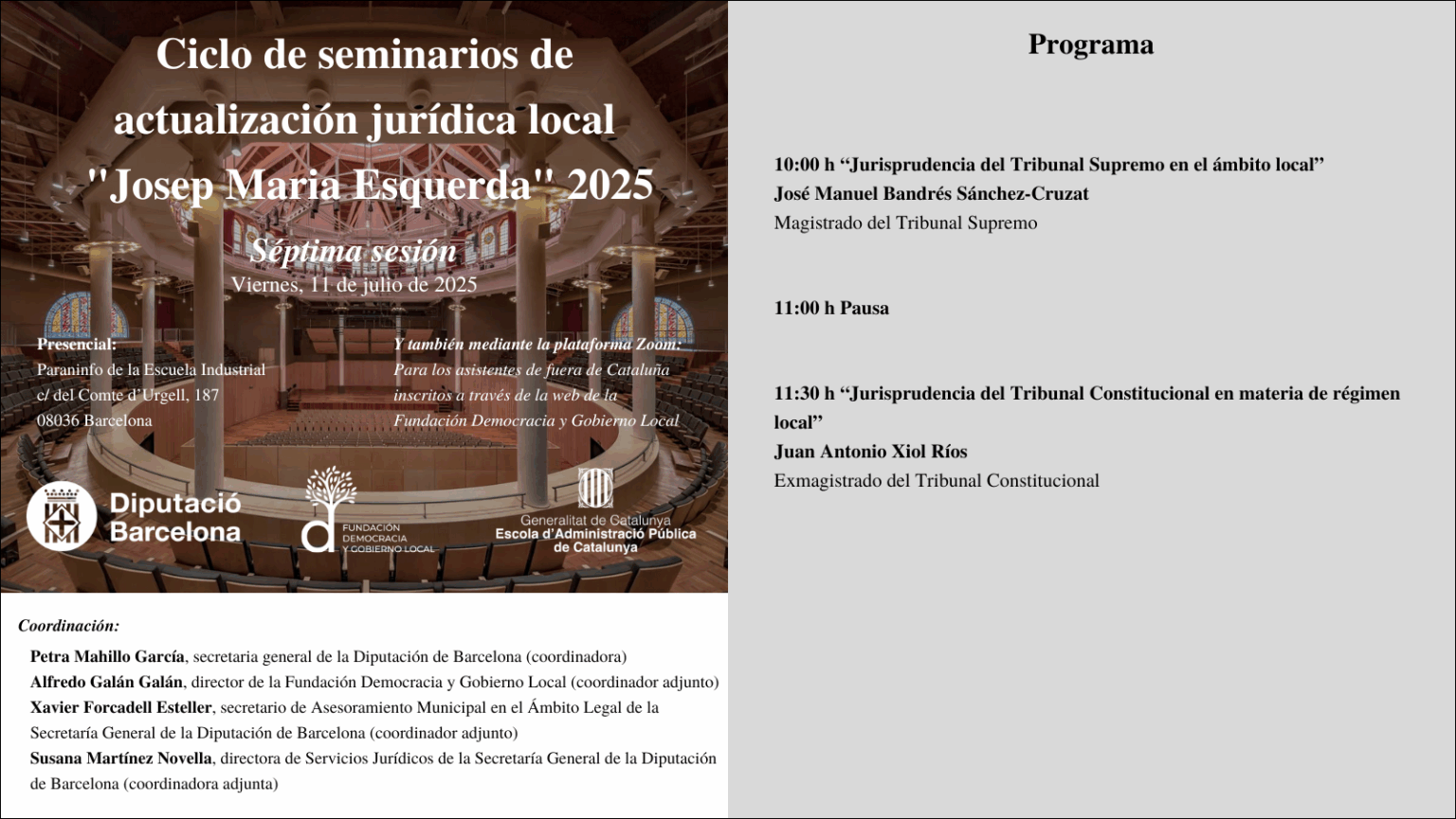 Ciclo de seminarios de actualización jurídica local Josep Maria Esquerda 2025 Séptima sesión