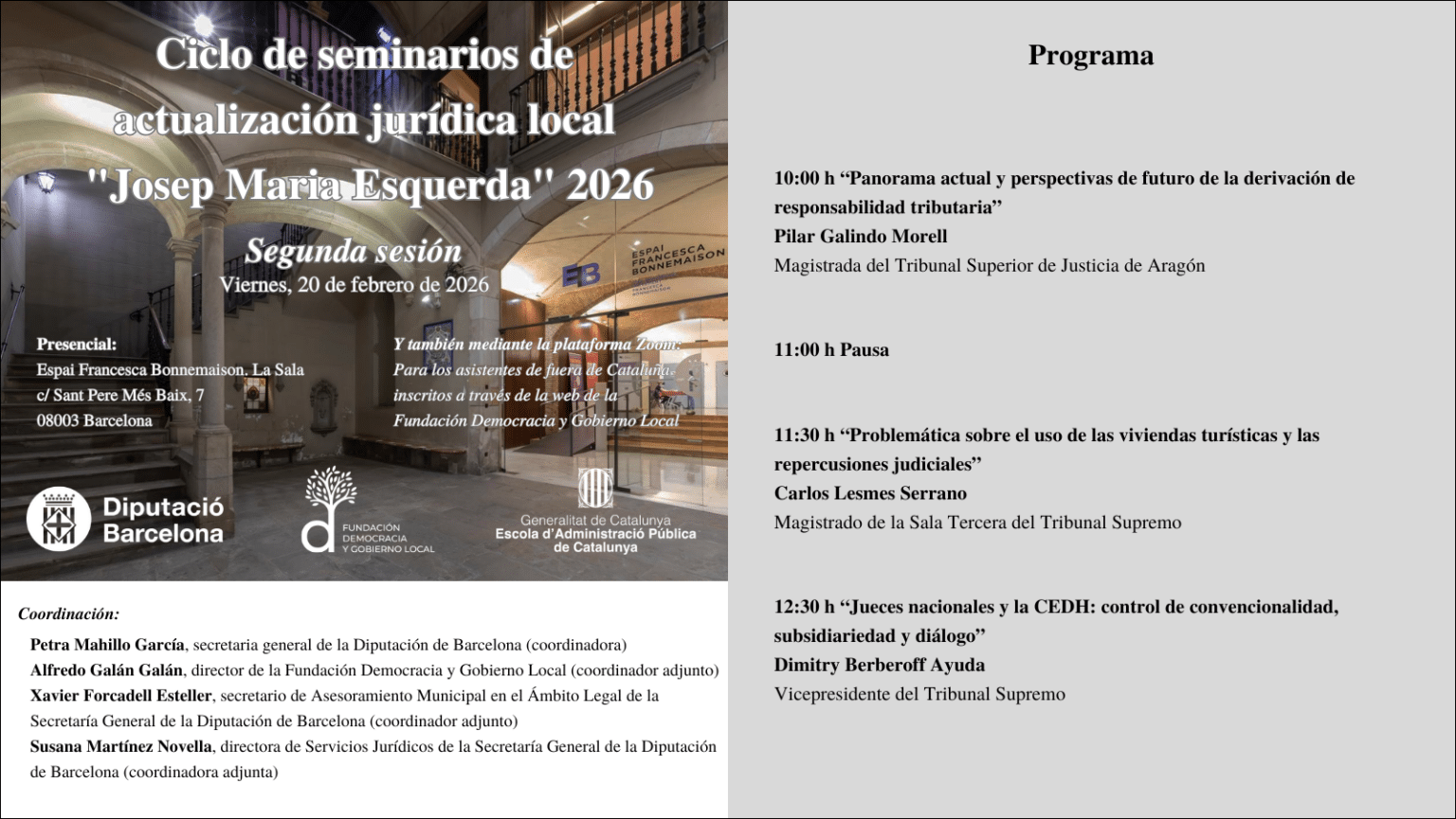 Ciclo de seminarios de actualización jurídica local Josep Maria Esquerda 2026 Segunda sesión