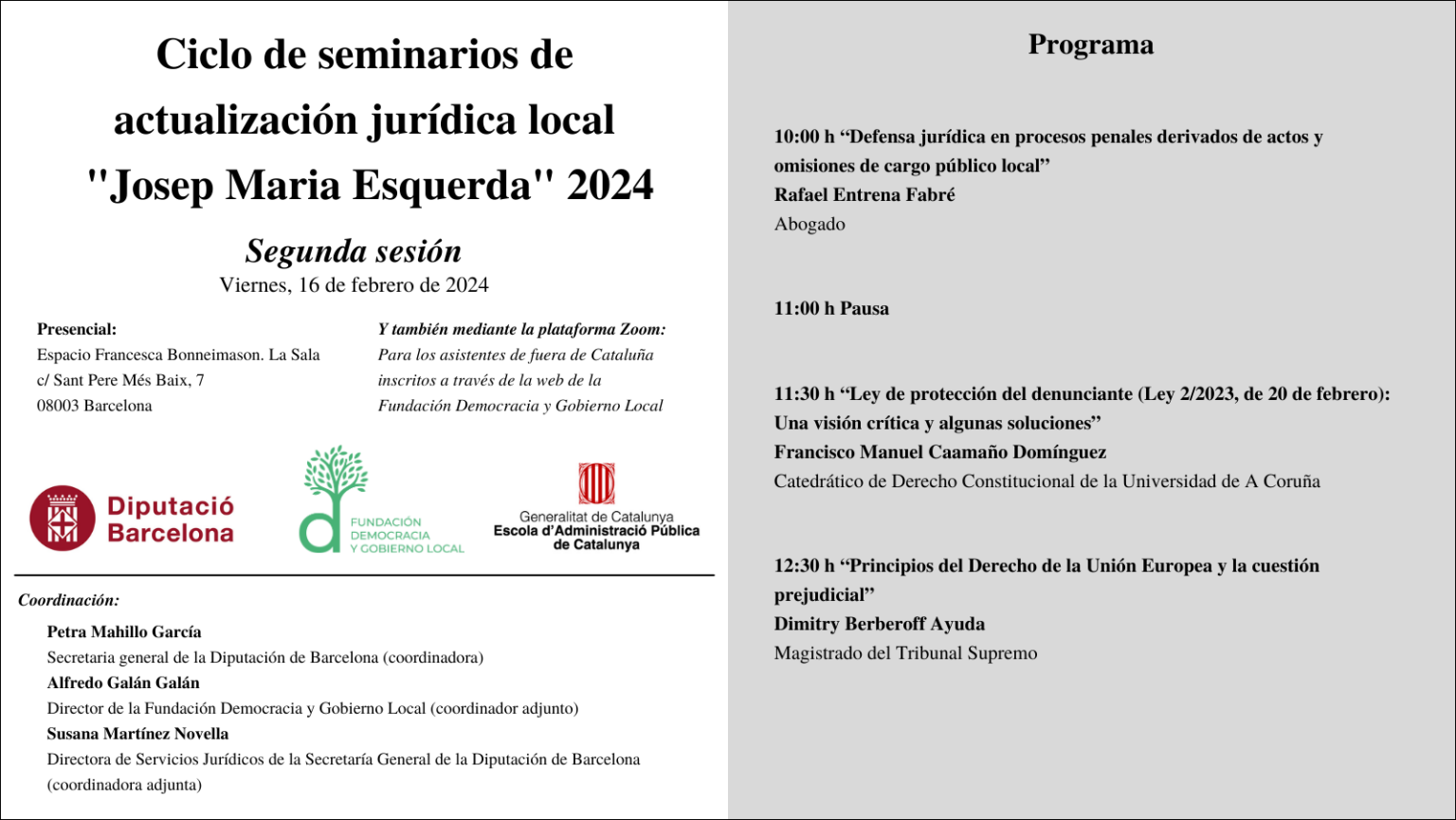 Ciclo de seminarios de actualización jurídica local Josep Maria Esquerda 2024 Segunda sesión