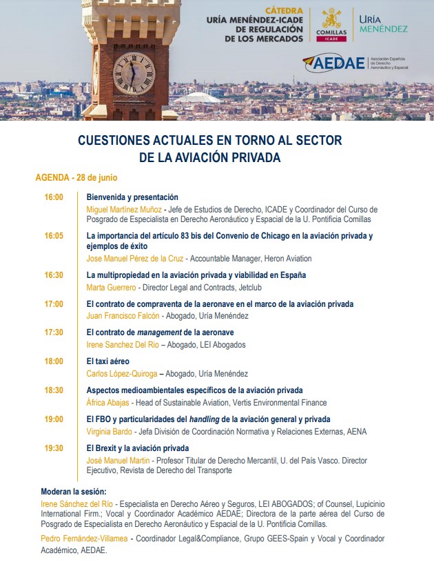 La Cátedra Uría Menéndez - ICADE de Regulación de los Mercados y la Asociación Española de Derecho Aeronaútico y Espacial (AEDAE)
