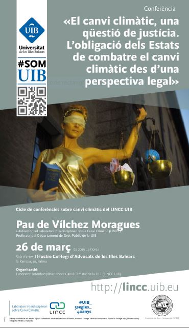 La conferencia, organizada por el Laboratorio Interdisciplinar sobre cambio climático (LICC) de la UIB, en colaboración con la Comisión de Derechos Humanos del ICAIB, tendrá lugar a las 19:00 horas en el ICAIB Palma, e irá a cargo del señor Pau de Vílchez Moragues, subdirector del LICC y profesor del departamento de Derecho Público de la UIB.