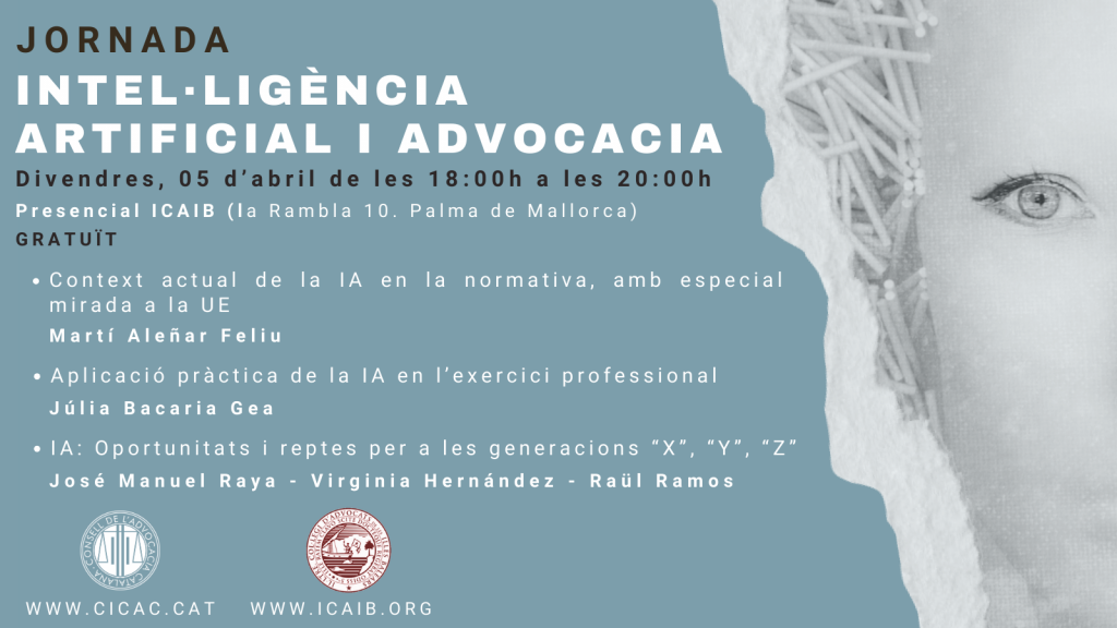 Us informem que la comissió TECH d’aquest Consell de l’Advocacia Catalunya juntament amb l’Il·lustre Col·legi d’Advocats de les Illes Balears organitzen una jornada gratuïta sota el títol: Intel·ligència Artificial i Advocacia.