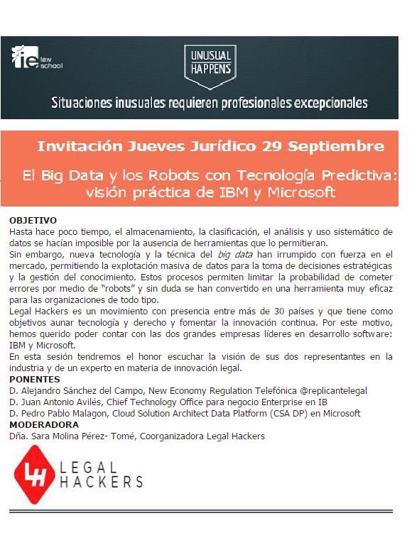 Abogados Agenda Big data Derecho Derecho Digital Derecho TICs IBM IE Law School Legal Hackers Madrid Microsoft Robótica